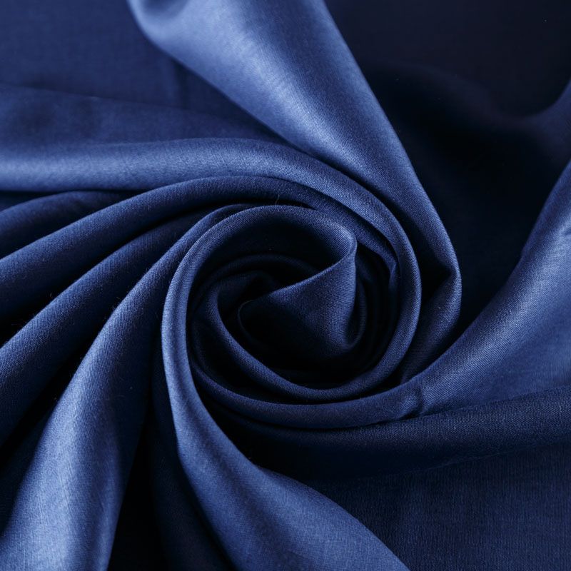 Итальянский плательно-рубашечный лен с добавлением вискозы в глубоком синем оттенке. Ткань прочная, имееет на ощупь приятную, гладкую поверхность, а визуально - выраженный рельеф и полотняное переплетение, держит форму, пластичная. Подойдет для пошива рубашек, брюк, шорт, юбок, платьев, сарафанов, топов, туники, комбинезона.