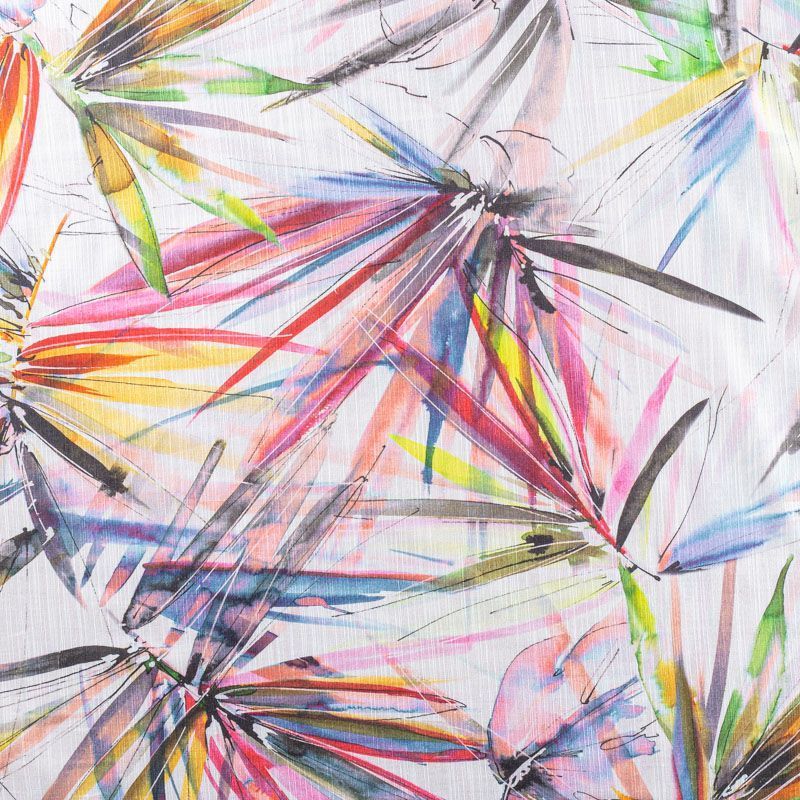 Итальянский плательно-рубашечный лен с добавлением вискозы молочного оттенка с тропическим растительным принтом. Ткань прочная, имееет выразительную матовую рельефную поверхность и полотняное переплетение, хорошо держит форму. Подойдет для пошива брюк, шорт, юбок, платьев, сарафанов, топов, комбинезонов, жакетов, кардиганов.
