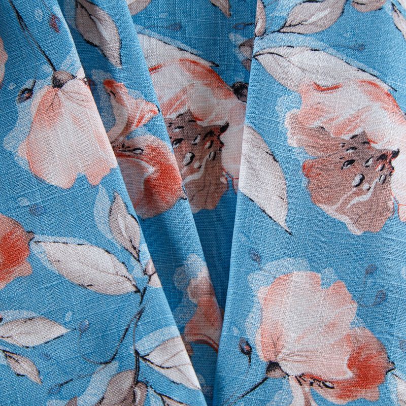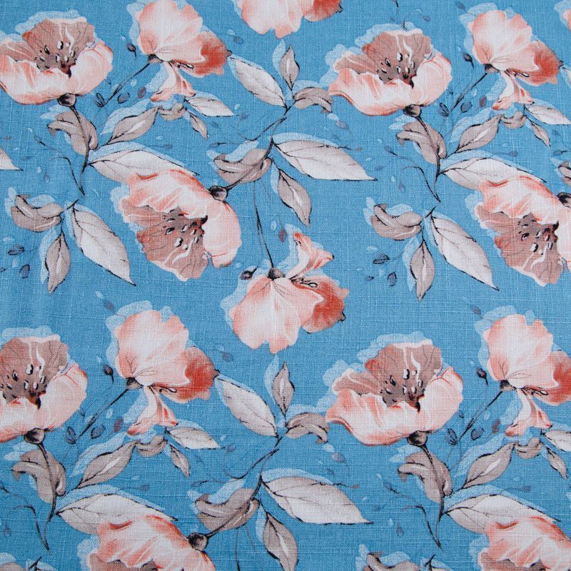 Лен-вискоза 035-13864 голубой принтованный в Нарьян-Маре