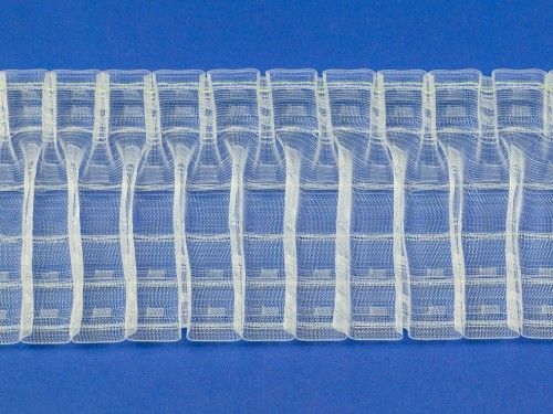 Драпировочная прозрачная лента с вафельной складкой. При использовании ленты, шторы имеют ровный верхний край и стабильные складки. Шторная лента отличается высоким качеством: ленты не дают усадки и деформации при стирке, отпаривании, самое главное - хорошо держат складки. Коэффициент сборки: 1:2.0. Раппорт 65 мм, расстояние между складками 32 мм, количество рядов кармашков - 5, количество стягивающих шнуров - 6. Макимальная глубина складки 16,5 мм.