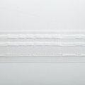 Шторная лента прозрачная с белыми нитями для тюлей и портьерных тканей с тройной бантовой складкой. Сокращение - 1:2,2, раппорт - 17,5 см, расстояние между складками - 8 см, 2 ряда кармашков, крепление - крючки.