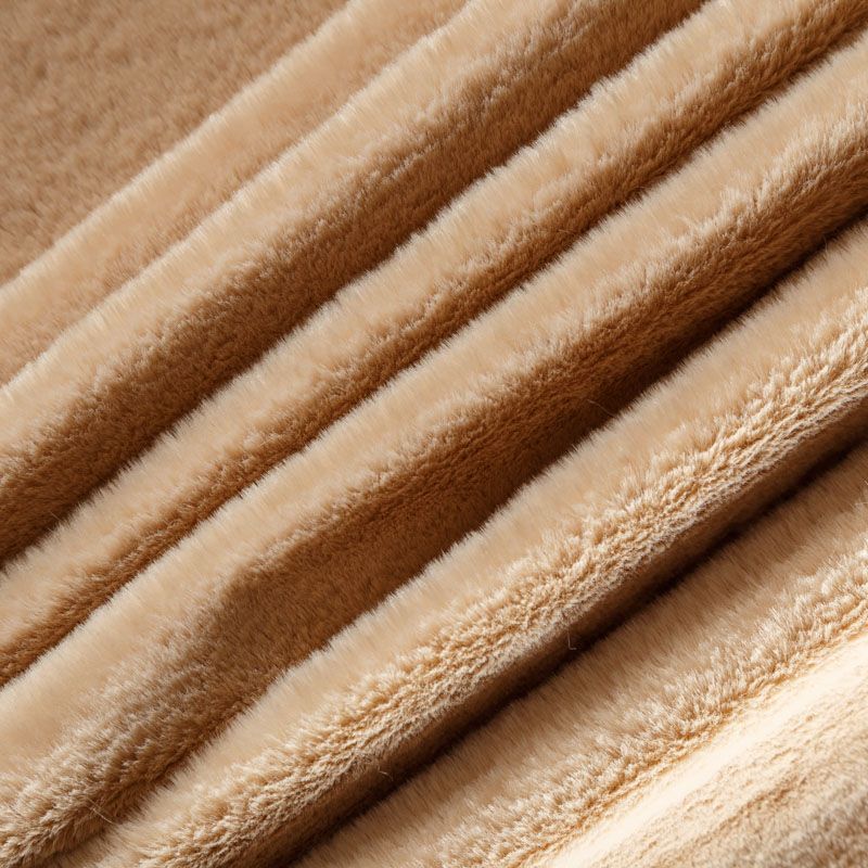 Искусственный мех, имитирующий мех мутона на трикотажной основе. Полотно мягкое, плюшевое, со средним нежным ворсом. Имеет красивый лоск и приятную гладкую фактуру. Мех не мнется, не скатывается, долго сохраняет свой вид, очень уютный. Не тяжелый, отлично драпируется. Идеально подойдет для пошива шубки, мехового пальто, бомбера, куртки.