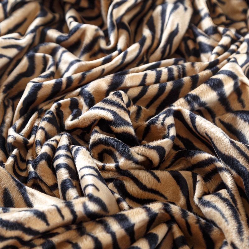 Коротковорсовый мех с принтом, имитирующим окрас тигра в естественных оттенках. Ткань мягкая, плотная, пластичная. Ворс матовый, имеет направление. Идеально подойдет для пошива шубки, мехового пальто или отделки.
