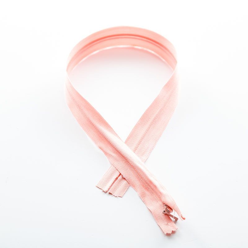 Зубчики потайной молнии скрыты тесьмой, вся конструкция легко прячется в шов изделия. Такие застёжки лучше использовать на вещах из тонкой ткани: платьях, брюках, юбках, блузках. Миниатюрный бегунок сливается с тесьмой и почти невиден для глаз. Зубчики плавно сцепляются, не топорщатся и не застревают.
