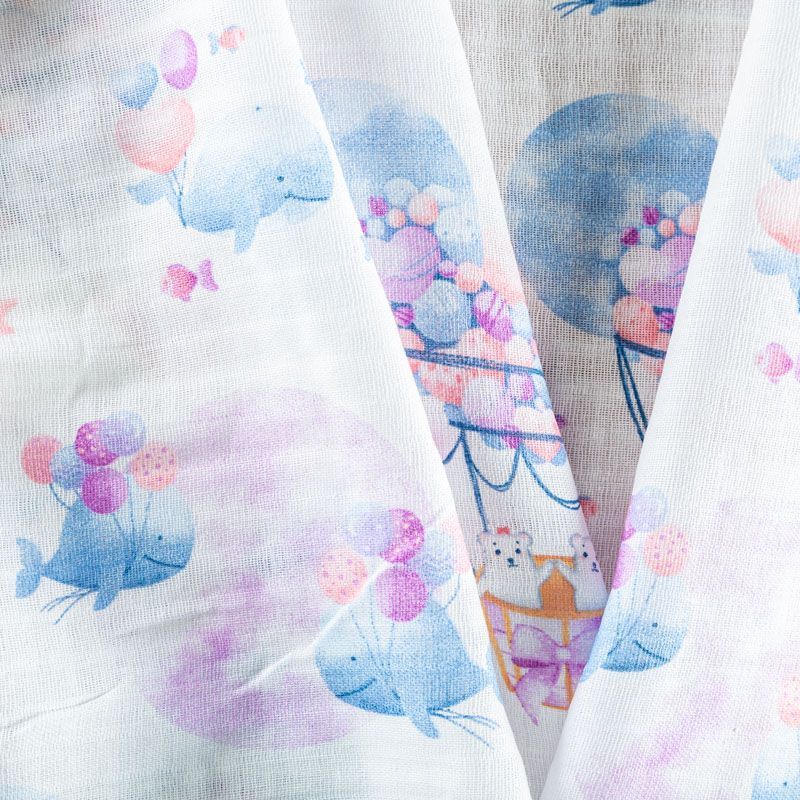 Хлопковый муслин полотняного переплетения, в котором нити утка и основы перекрывают друг друга на больших промежутках, поэтому ткань очень мягкая, легкая, частично прозрачная. Муслин используется для пошива подгузников, пелёнок, комплектов постельного белья для взрослых и детей, занавесок и пологов для детских кроваток, а также одежды.