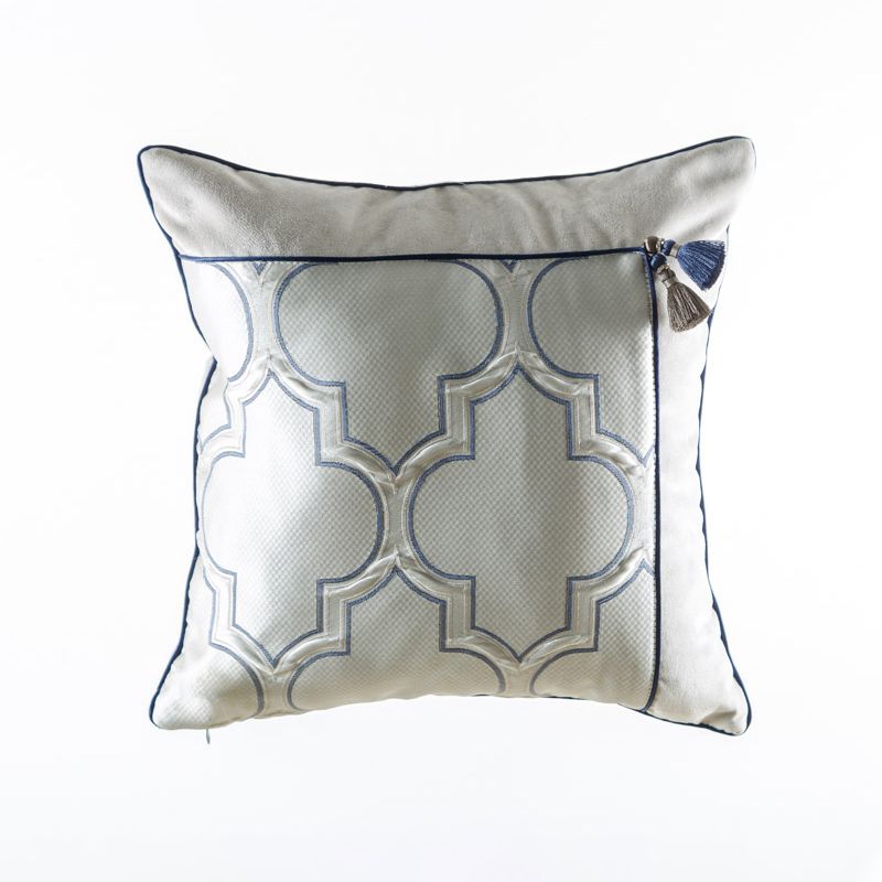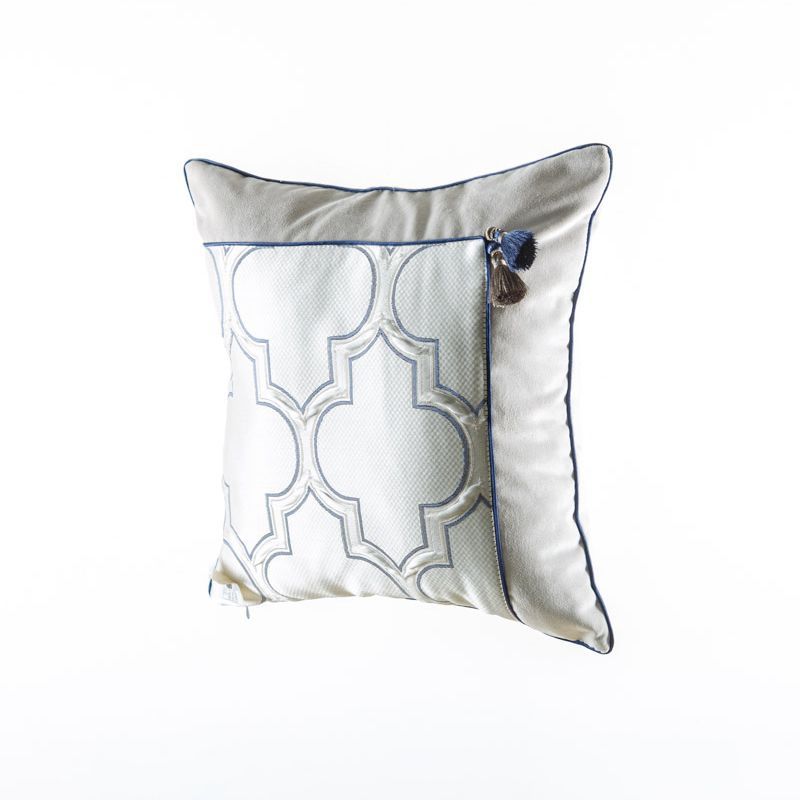 Оригинальная дизайнерская наволочка на подушку 45х45 см. Выполнена из бархата и жаккарда и декорирована кантом и кисточкой. Потайная молния расположена в нижнем шве. Декоративные подушки сделают акцет на цветовой гамме Вашего помещения, подчеркнут особенности интерьерного стиля или тематику оформления. Внимание! Подушка-вкладыш или синтепон приобретаются отдельно.