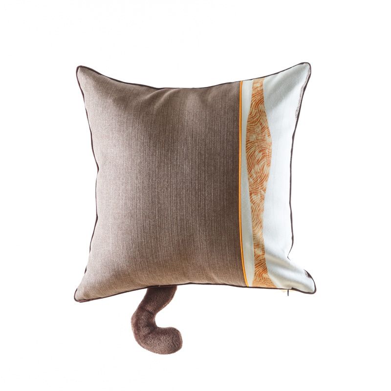 Оригинальная дизайнерская наволочка 45х45 см. Выполнена из смесового принтованного и однотонного материала и декорирована кантом и меховой аппликацией. Потайная молния расположена в нижнем шве. Декоративные подушки сделают акцет на цветовой гамме Вашего помещения, подчеркнут особенности интерьерного стиля или тематику оформления. Внимание! Подушка-вкладыш или синтепон приобретаются отдельно.