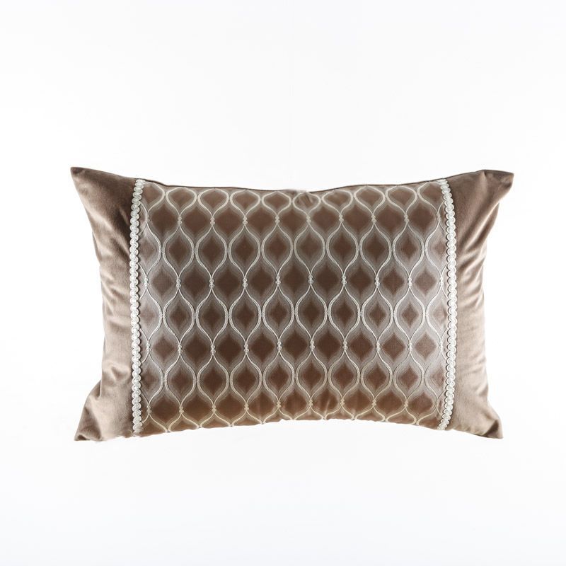 Оригинальная дизайнерская наволочка 60х40 см. Выполнена из бархата  и жаккарда и декорирована ажурной тесьмой и кантом. Потайная молния расположена в нижнем шве. Декоративные подушки сделают акцет на цветовой гамме Вашего помещения, подчеркнут особенности интерьерного стиля или тематику оформления. Внимание! Подушка-вкладыш или синтепон приобретаются отдельно.