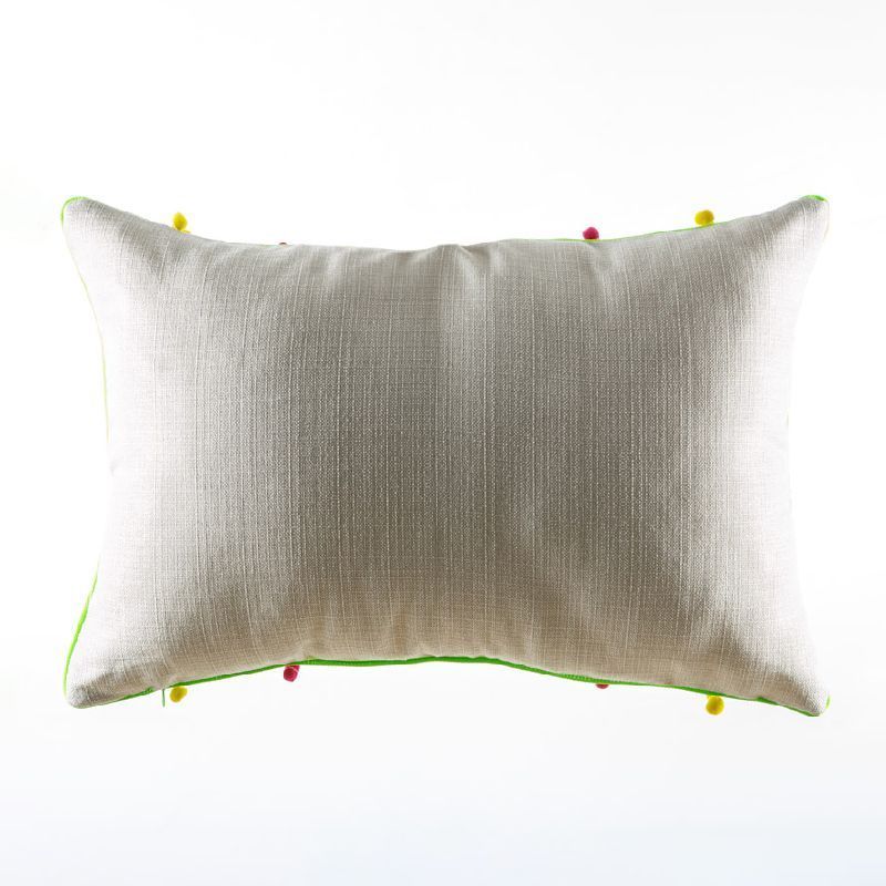 Оригинальная дизайнерская наволочка на подушку 60х40 см. Декорирована контрастым кантом и тесьмой с помпонами. Потайная молния расположена в нижнем шве. Декоративные подушки сделают акцет на цветовой гамме Вашего помещения, подчеркнут особенности интерьерного стиля или тематику оформления. Внимание! Подушка-вкладыш или синтепон приобретаются отдельно.