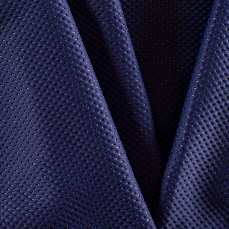 Плотное перфорированное полотно темно-синего оттенка, не тяжелое, гибкое, великолепно держит форму и хорошо тянется. Прочное, практичное, долговечное, совершенно не мнется. Отлично сохраняет тепло. Подойдет для пошива пальто, жакетов, курток, жилетов, также используется для спортивной и медицинской одежды.