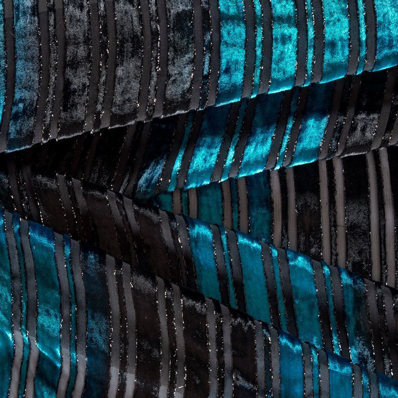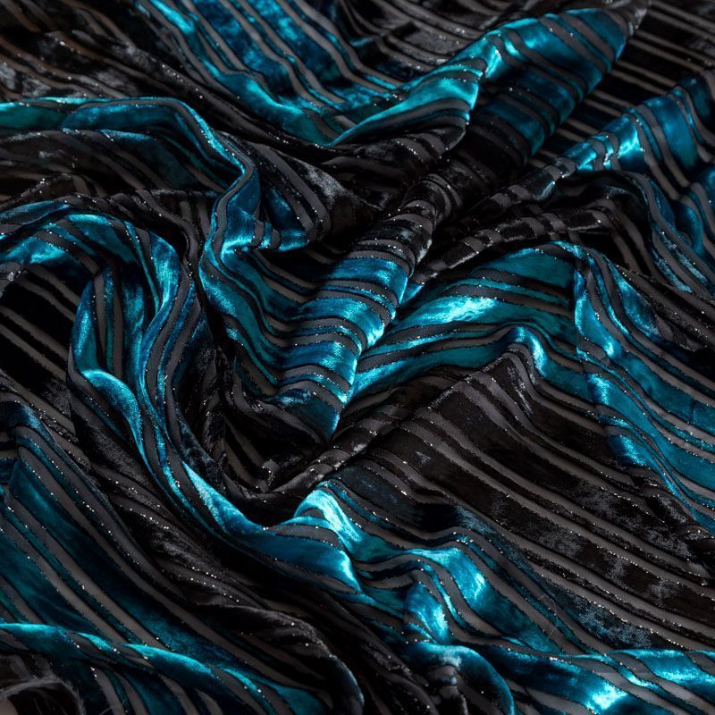 Итальянская шелковая красивая и эффектная ткань с гладким, немного глянцевым ворсовым узором на матовой шифоновой основе черного цвета. Панбархат тонкий, но объемный за счет рельефности рисунка, при драпировке ложится мягкими струящимися складками. Отлично подойдет для пошива блузы, туники, платья, костюма в пижамном стиле.