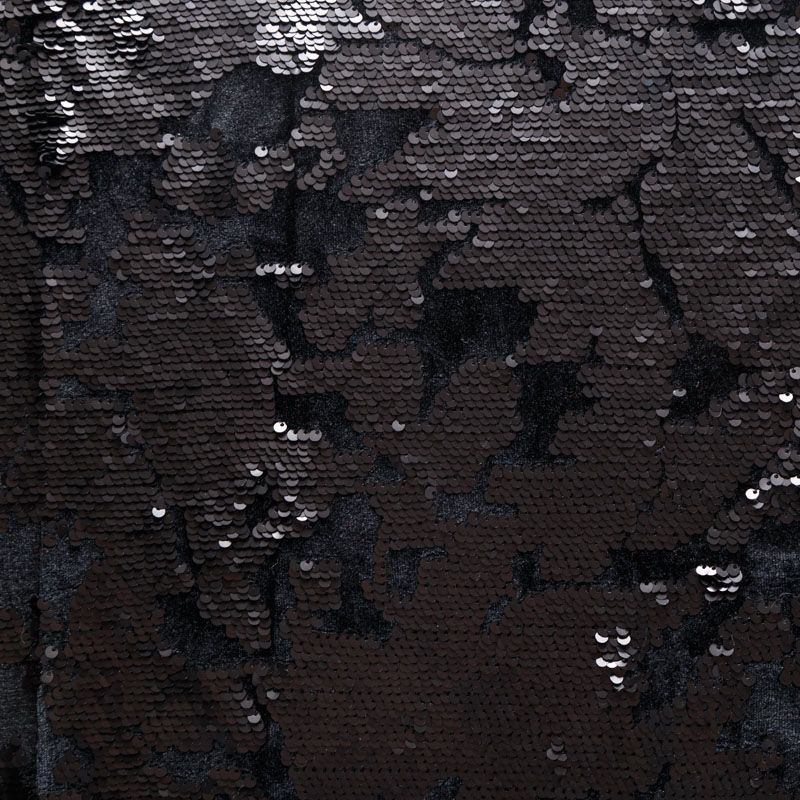Структурированные пайетки, вышиты на эластичной бархатной основе черного цвета. Ткань яркая и выразительная, красиво переливается, очень нарядная, хорошо драпируется, пластичная и эластичная и в длину, и в ширину, благодаря чему изделия получаются комфортными и отлично сидят по фигуре. Пайетки — идеальный материал для праздников и вечеринок, также отлично впишутся в стиль "спорт-шик". Из них получится эффектное платье, жакет, боди, топ, туника, юбка или комбинезон.