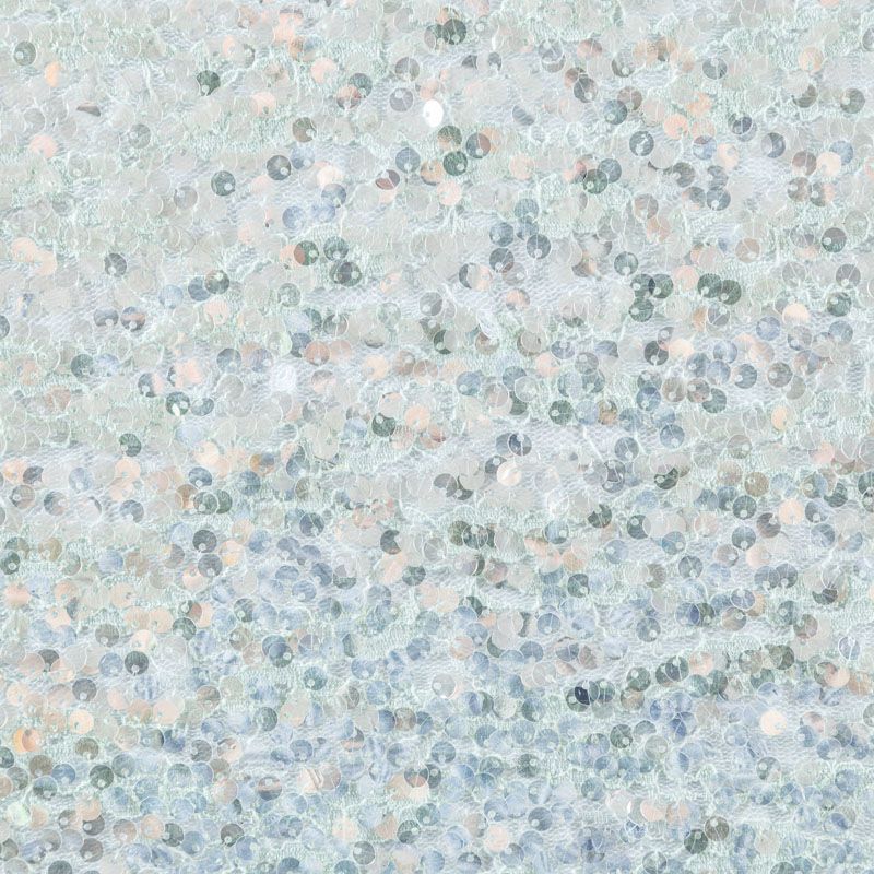 Итальянское ажурное кружевное полотно мятного оттенка с цветочным рисунком и нашитыми на него прозрачными глянцевыми пайетками с лицевой стороны. Ткань полупрозрачная, требуется подклад. Очень мягкая и пластичная, эффектно переливается при движении, хорошо драпируется. Пайетки — идеальный материал для праздников и вечеринок. Из них получится эффектное платье, туника, топ, юбка или комбинезон.