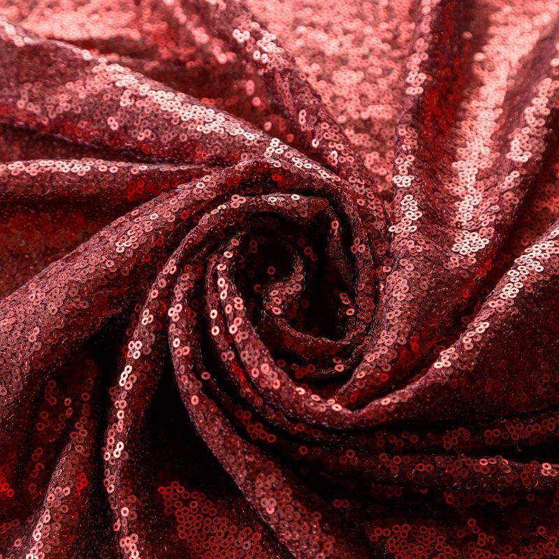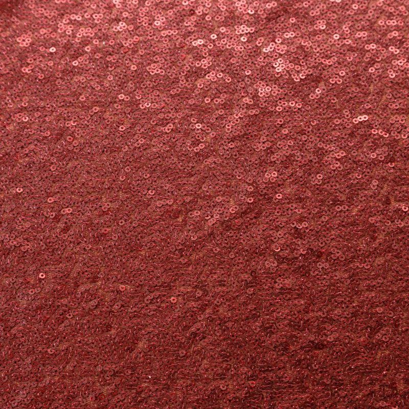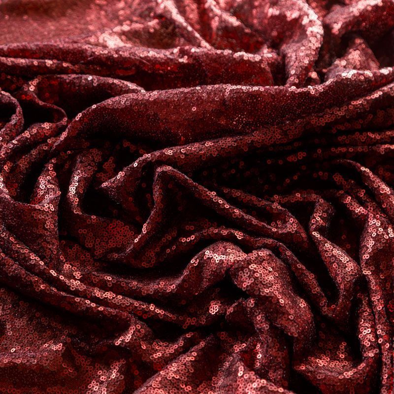 Блестящие пайетки в винном оттенке. Мелкие, размером около 3 мм, расположены в хаотичном порядке. Основа - мягкая и эластичная сетка.  Ткань полупрозрачная, может потребоваться подклад. Подойдет для вечернего, коктейльного платья, юбки, нарядных детских изделий, танцевальных и сценических костюмов.