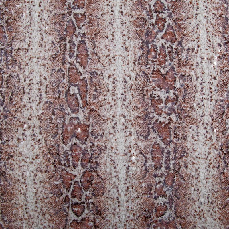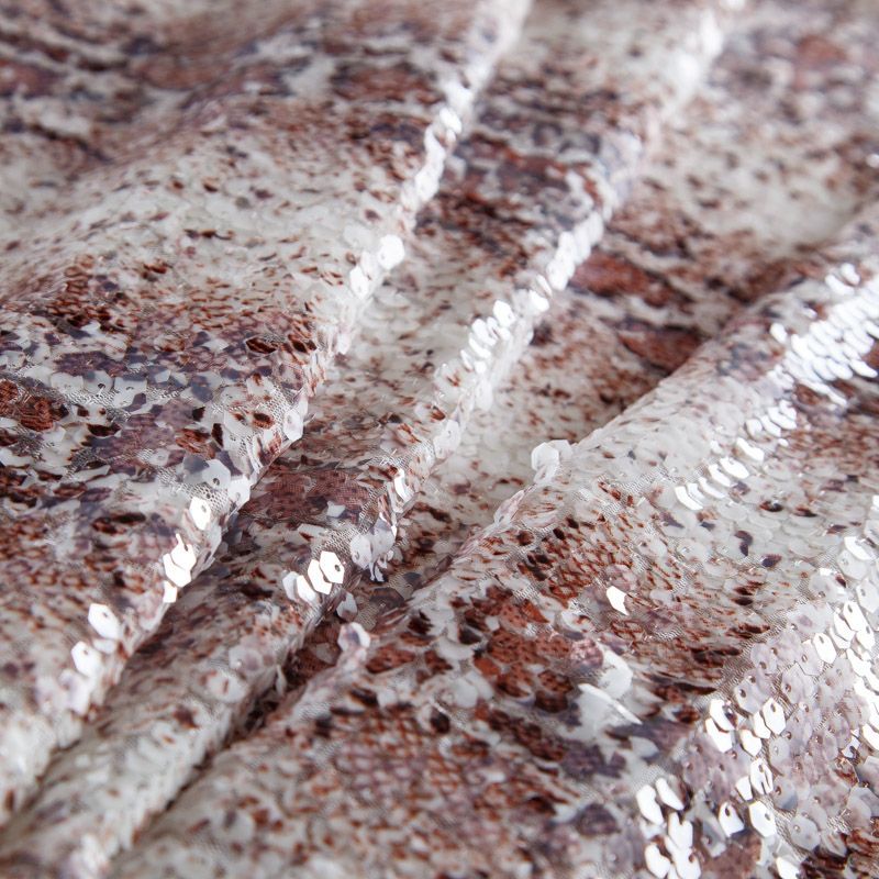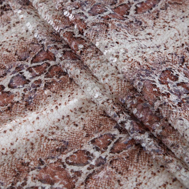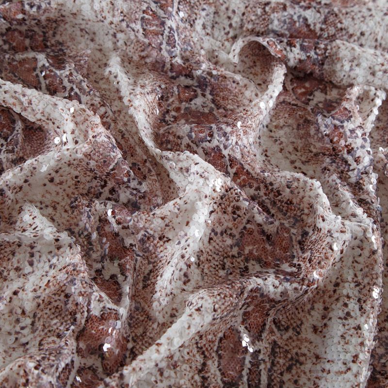 Итальянские пайетки на молочной эластичной сетке с анималистичным принтом в коричнево-бежевых оттенках.