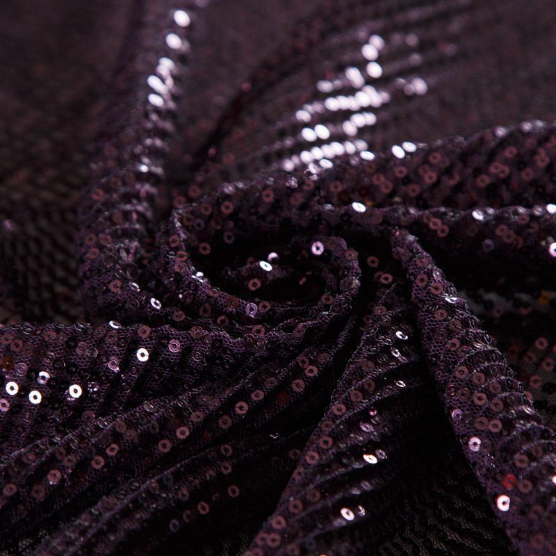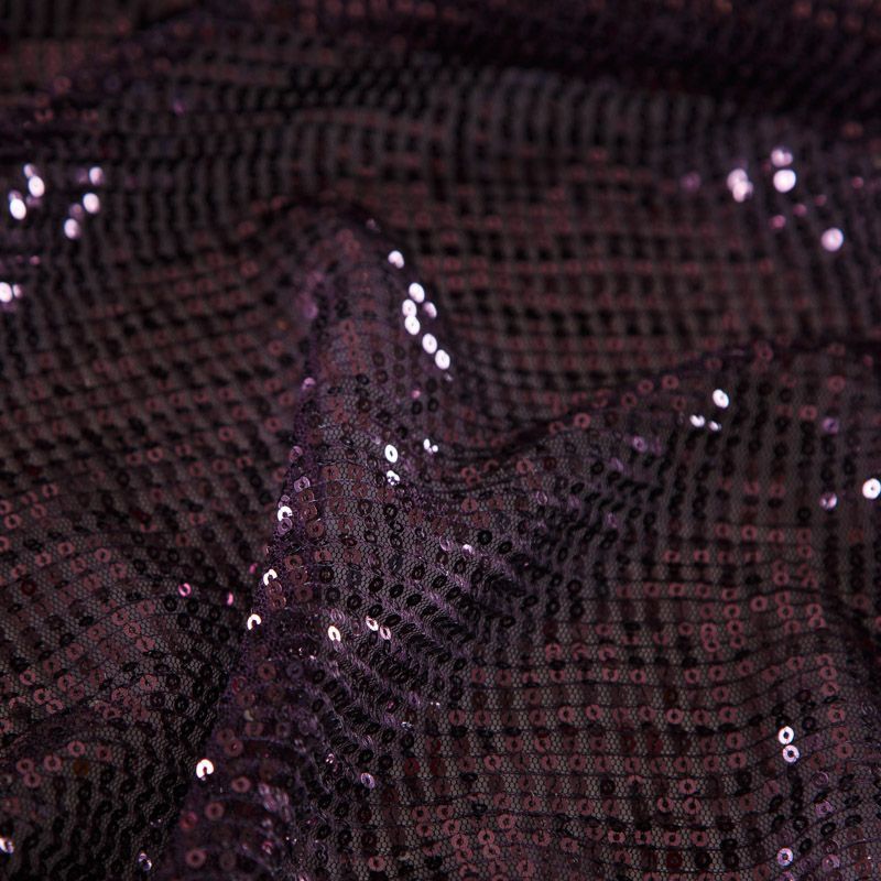 Пайетки на сетке плиссе 055-16446 баклажановый однотонный