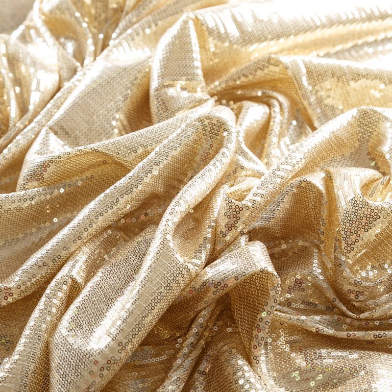 Основа ткани - трикотажное эластичноеполотно, расшитое мелкими глянцевыми пайетками в тон основе. Ткань очень хорошо драпируется, красиво переливается, пластичная и эластичная и в длину, и в ширину, благодаря чему изделия получаются комфортными и отлично сидят по фигуре. Пайетки — идеальный материал для праздников и вечеринок. Из них получится эффектное платье, жакет, боди, топ, туника, юбка или комбинезон.