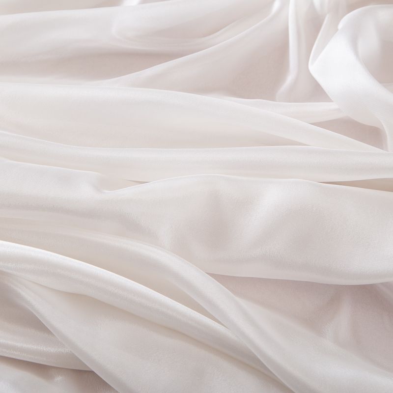 Перламутровый шифон — это разновидность шифона, отличающийся атласным, переливающимся блеском. Ткань легкая, струящаяся, не просвечивает, хорошо драпируется. Применяется в пошиве вечерних и свадебных платьев, блузок, юбое, сценических костюмов, одежды для спортивных бальных танцев, детских вещей, а также платков, шалей и прочих аксессуаров.