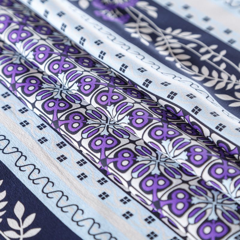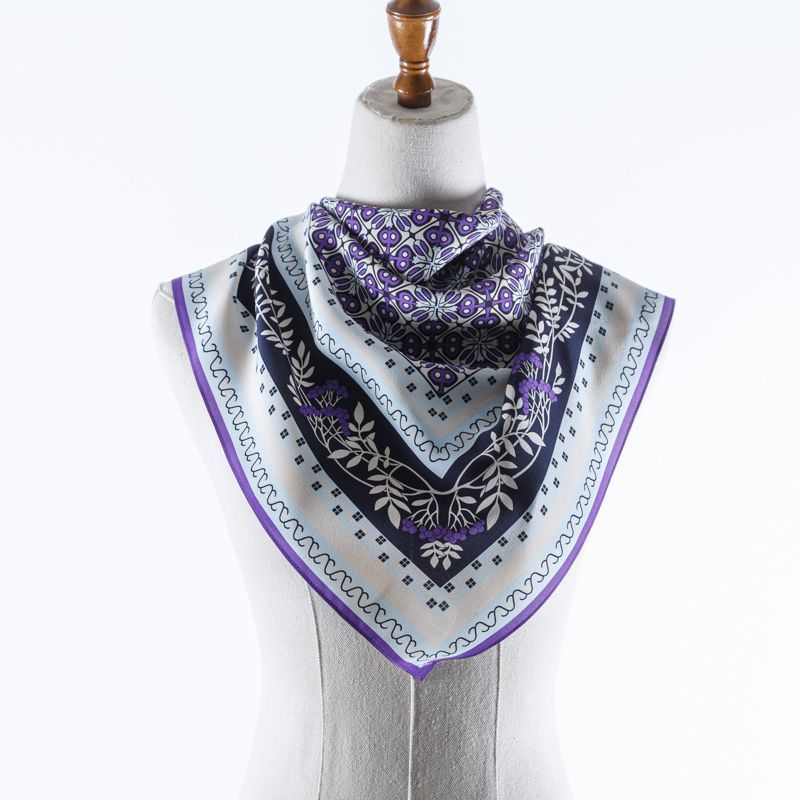 Платок выполнен из шелкового крепдешина с расттительно-абстрактным орнаментом. Невесомый, воздушный, мягкий и пластичный, летящий, поверхность матовая, фактурная. Будет отличным стильным аксессуаром к платью, костюму, жакету или пальто.