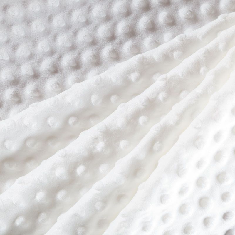 Мягкое, нежное, приятное на ощупь, с гладкой текстурой, красивым блестящим эффектом. Фактура – пузырьки. На лицевой стороне мягкий ворс 1 мм. Изнаночная сторона  — гладкое  трикотажное полотно без ворса. Используется  для пошива покрывал, пледов, одеял, бортиков в кроватку, конвертов для новорождённых, мягких игрушек, комбинезонов, пижам, домашней одежды, лежанок для домашних питомцев.
