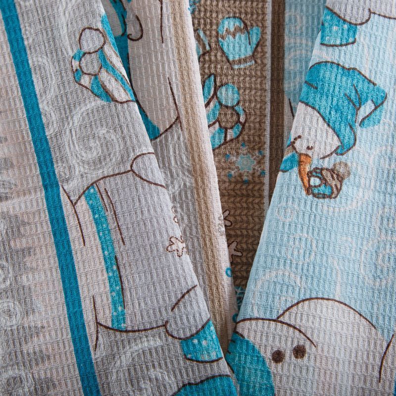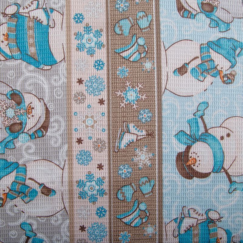 Полотно вафельное 007-15306 серо-голубой принтованный