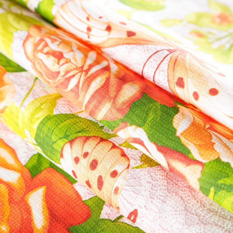 Качественная натуральная хлопчатобумажная ткань, обладающая высокой гигроскопичностью, с ярким цветочным принтом. Универсальный материал, из которого шьют кухонные полотенца, скатерти, прихватки, салфетки.