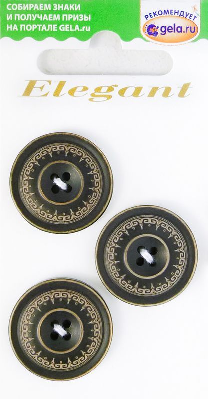Пуговицы ELEGANT 23 мм пластик 3 шт 12081-23-00004/3 черный/медный в Нарьян-Маре