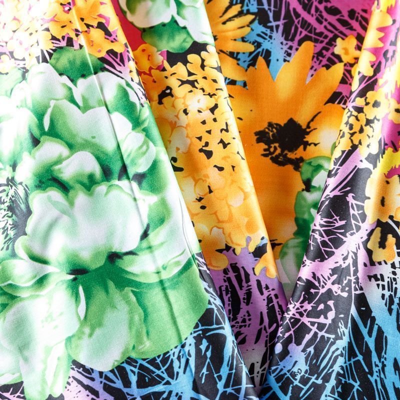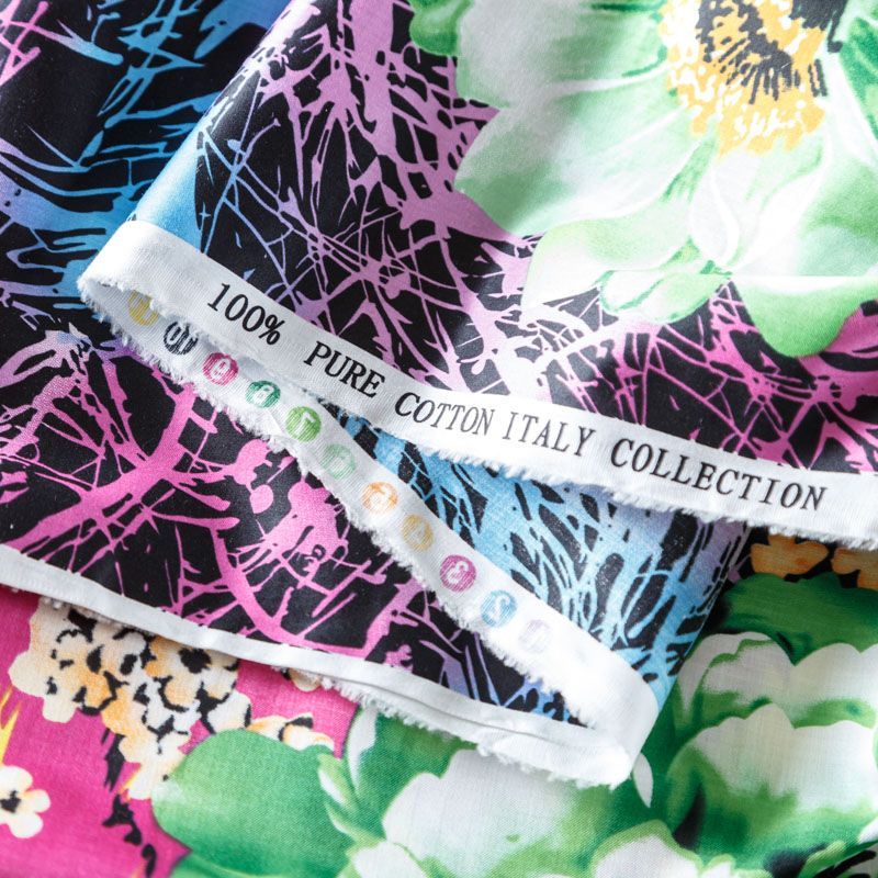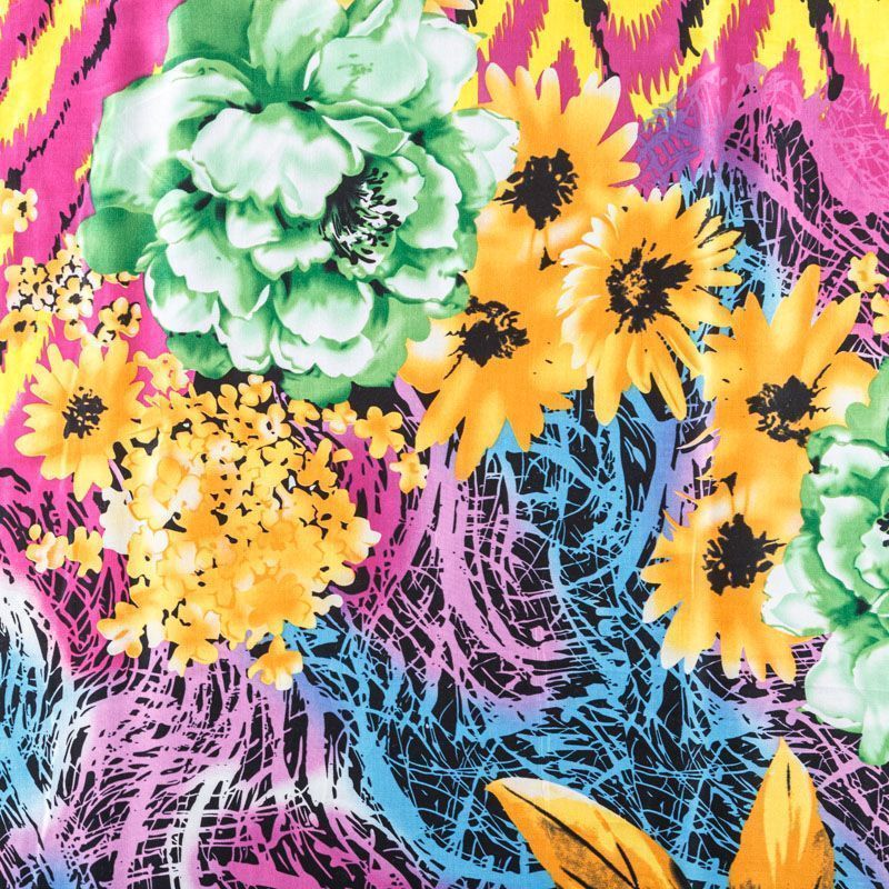 Итальянский плательно-рубашечный хлопок сатинового плетения крупным ярким принтом. Ткань лёгкая, непрозрачная, поверхность матовая, гладкая, приятная к телу, хорошо драпируется. Прекрасно подойдет блузы, платья-рубашки, летнего сарафана, туники, домашней одежды.