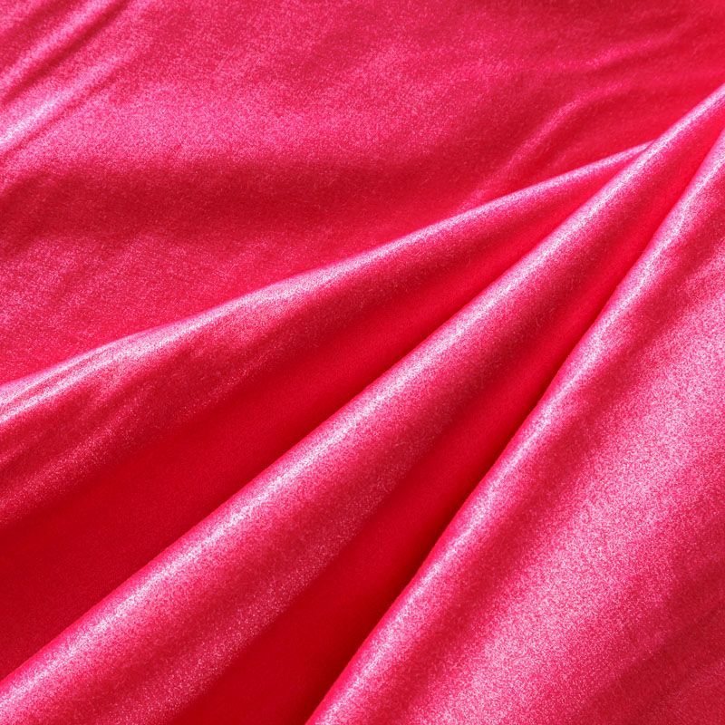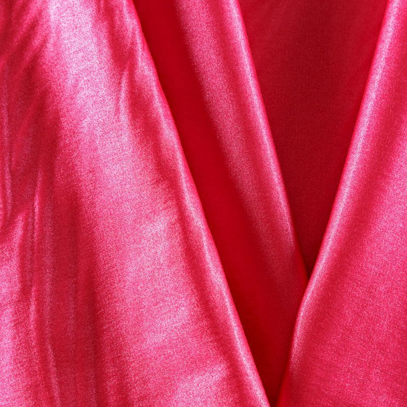 Итальянский сатин-коттон средней плотности в малиновом оттенке с содержанием люрексовой нити. Поверхность ткань слегка шероховатая, с искрящимся блеском. Материал хорошо держит форму и драпируется, тянется за счет эластана в составе. Подойдет для пошива нарядных костюмов, платьев, жакета, юбки, брюк или шорт.