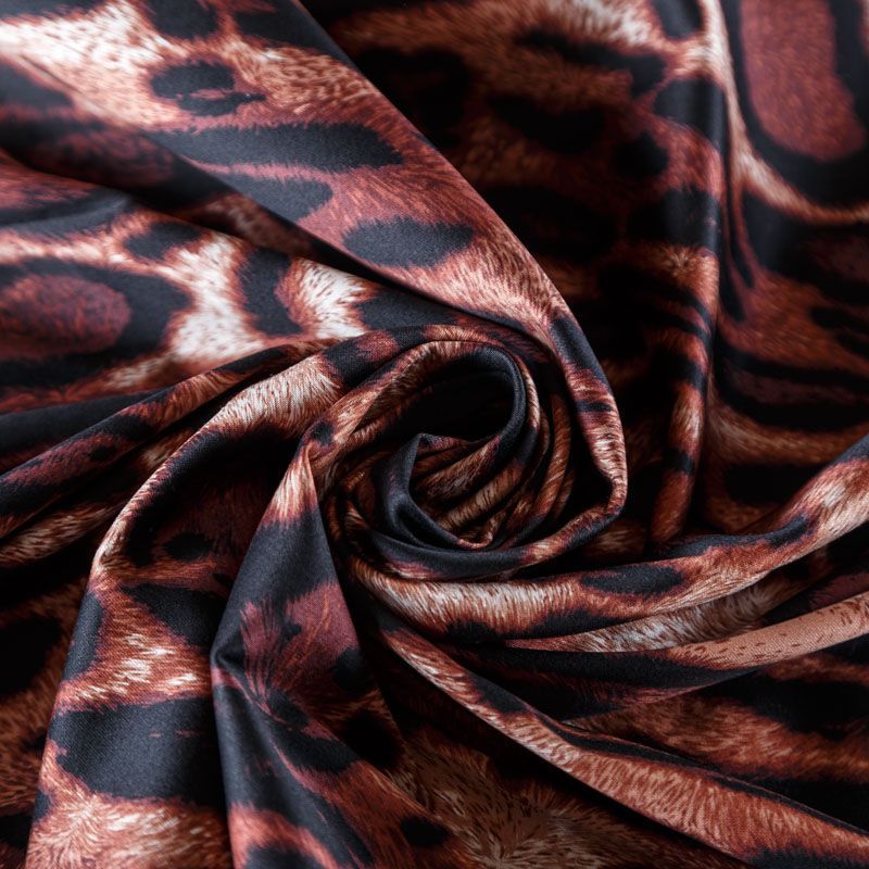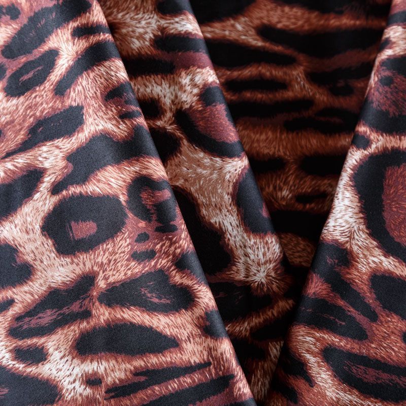 Итальянский сатин-коттон с анималистическим принтом в природных оттенках. Поверхность гладкая со сдержанным блеском, ткань средней плотности, не толстая, хорошо держит форму, тянется за счет эластана в составе. Подойдет для пошива костюма, жакета, юбки, платья, брюк или шорт.