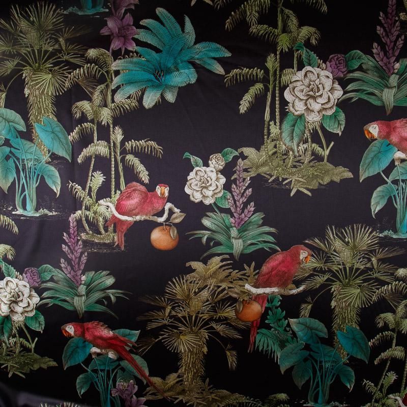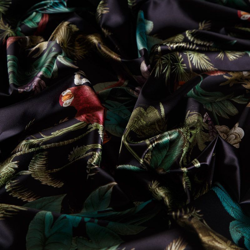 Сатин стрейч 001-14954 черный принтованный в Нарьян-Маре