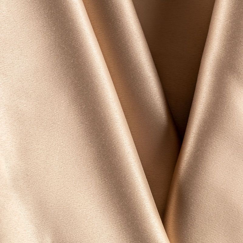 Прочная костюмно-плательная ткань с гладкой шелковистой лицевой поверхностью. Приятная на ощупь, отлично драпируется. Ткань плотная с небольшим добавлением спандекса (стрейч), имеет матовый сатиновый, очень благородный блеск. Отлично подойдет для пошива практически любого изделия: платьев, костюмов, юбок, брюк, бомберов, а также свадебных и вечерних платьев, создания корсетов.