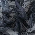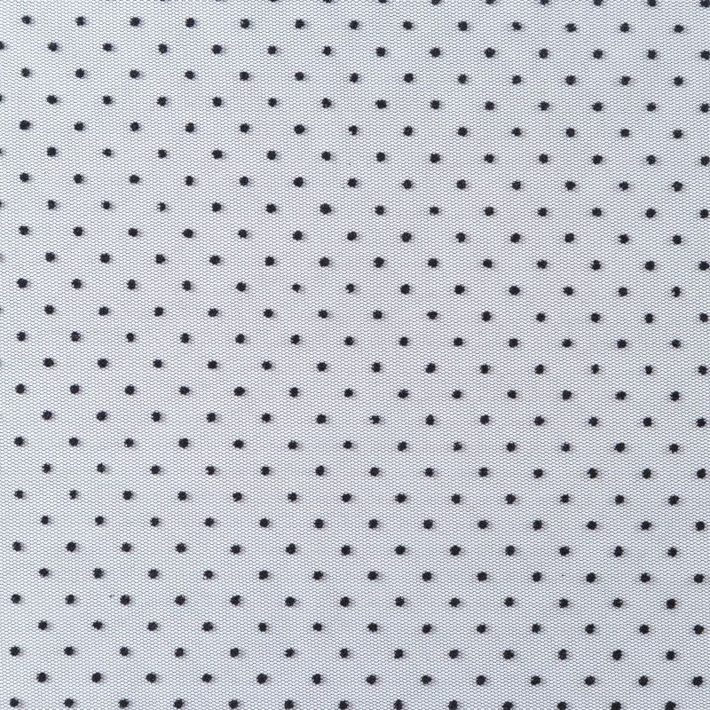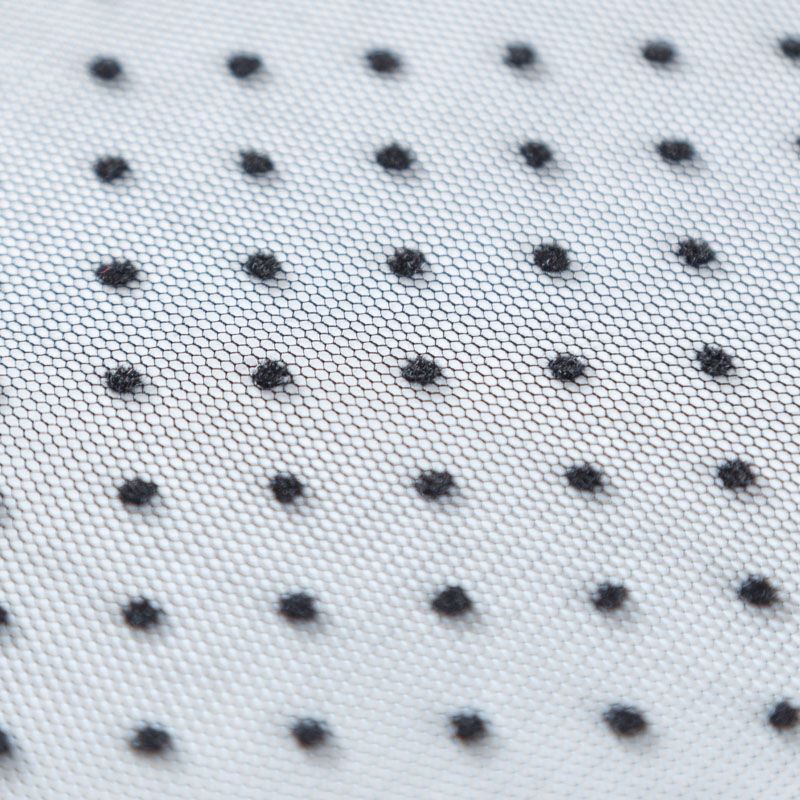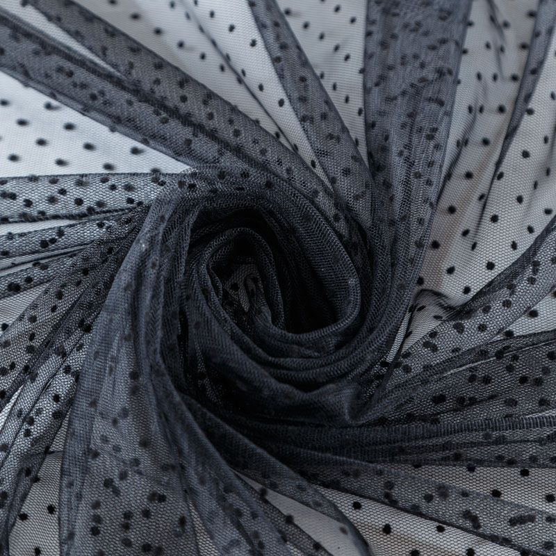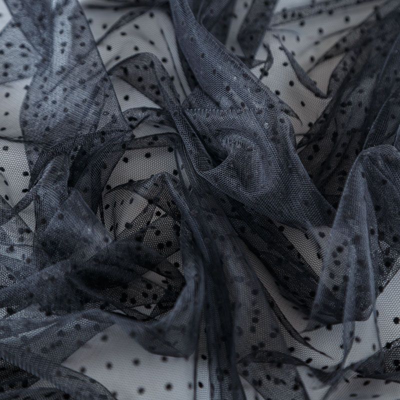 Тонкое, нежное, мягкое и прозрачное полотно, состоящее из мелких ячеек, на которых нанесены рельефные горошины.  Красиво драпируется, тянется, применяется для декорирования деталей одежды, например, рукавов изделия, для пошива нарядной и повседневной одежды: топов, блузок, пышных юбок и платьев.