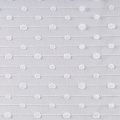 Тонкое, нежное, мягкое и прозрачное полотно, состоящее из мелких ячеек, на которых нанесен рельефный плетеный принт в виде тонких полосок с горошинами.  Красиво драпируется, тянется, применяется для декорирования деталей одежды, например, рукавов изделия, для пошива нарядной и повседневной одежды: топов, блузок, пышных юбок и платьев.