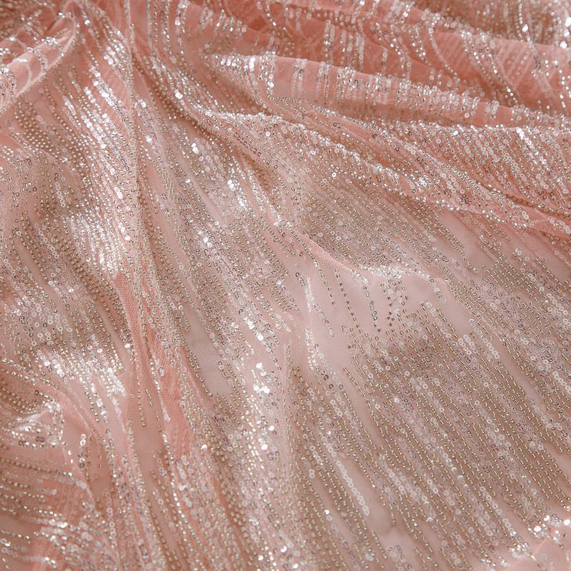 Сетка с бисером и пайетками 050-17615 кораллово-розовый в Нарьян-Маре