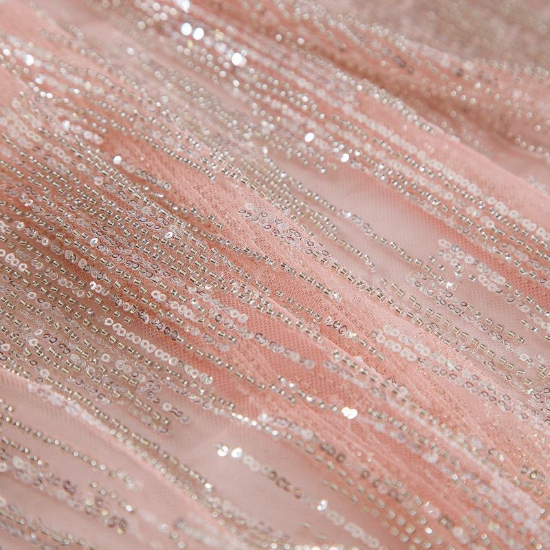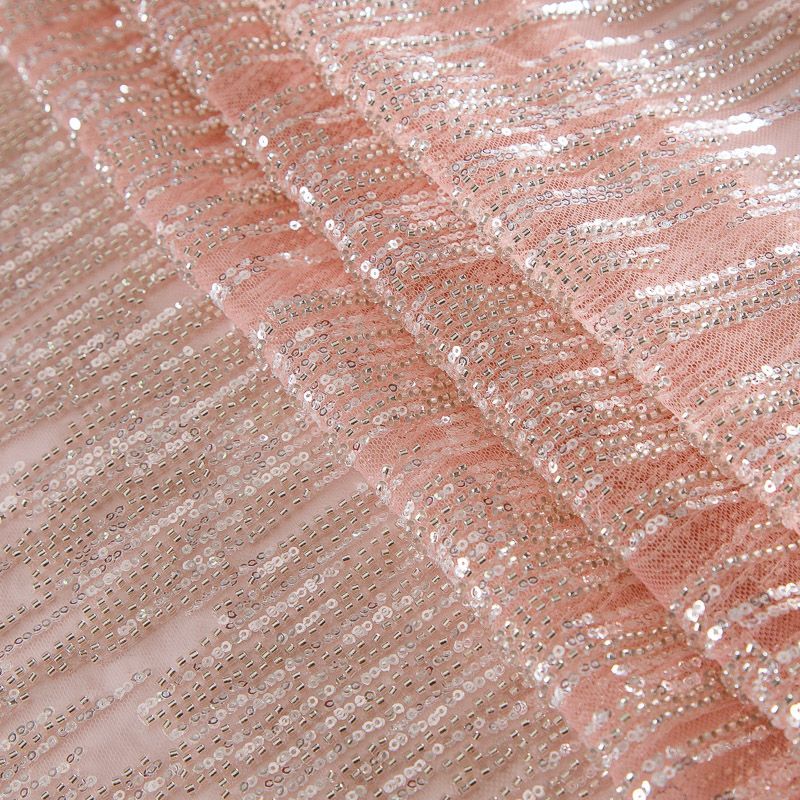 Сетка с бисером и пайетками 050-17615 кораллово-розовый