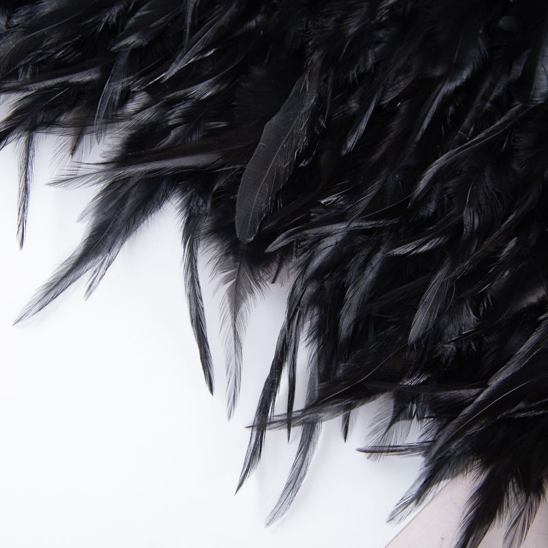Эксклюзивная и лимитированная по количеству итальянская позиция для пошива нарядных образов! Эластичная сетчатая основа очень густо расшита черными глянцевыми пайетками, что обеспечивает непрозрачность полотна. Ширина полосы с роскошным густым черным пером около 40-45 см от нижней кромки, это позволяет экспериментировать с кроем для пошива различных изделий. Набирается на изделие объемом.