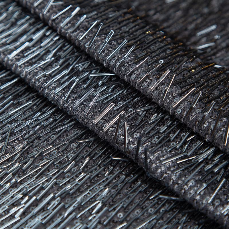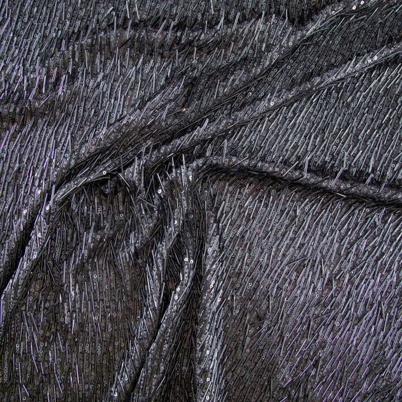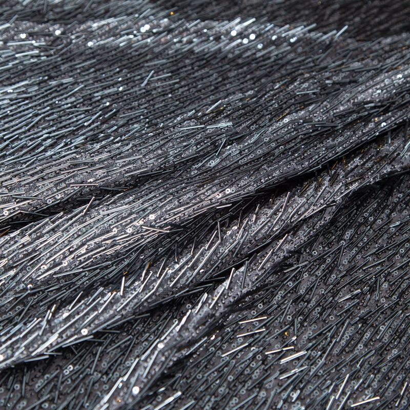 Сетка с пайетками и стеклярусом 050-19862 антрацит