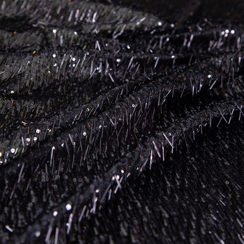 Сетка с пайетками и стеклярусом 050-19865 черный
