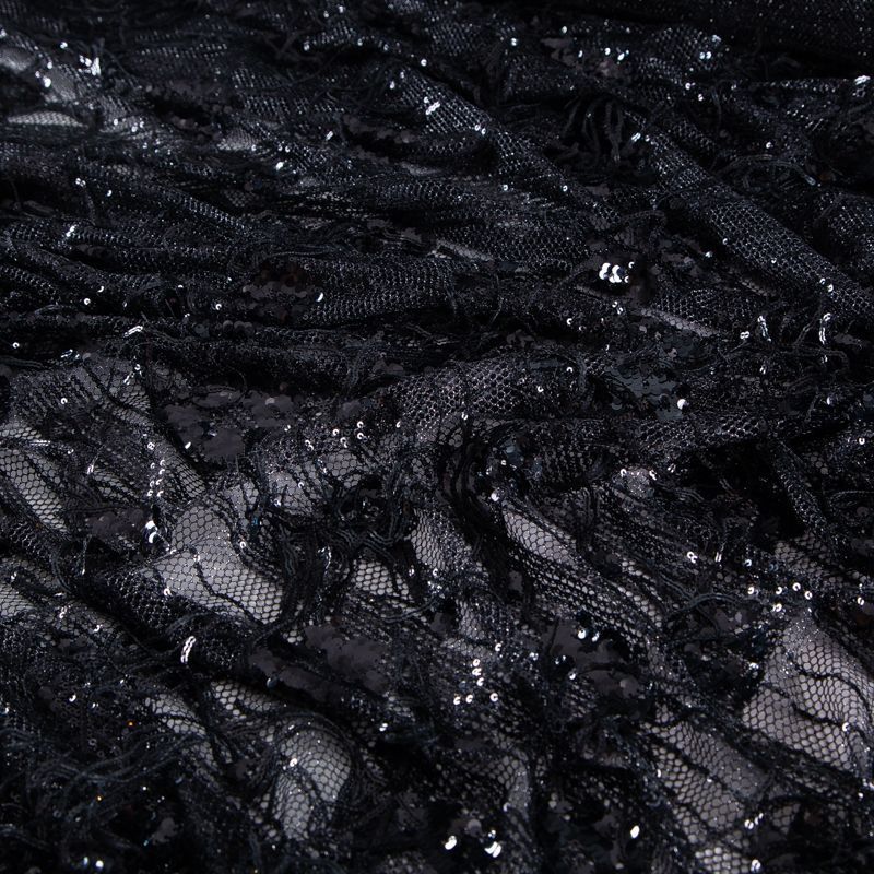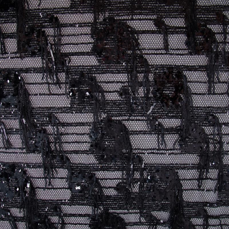 Сетка с вышивкой и пайетками 055-20761 черный в Нарьян-Маре