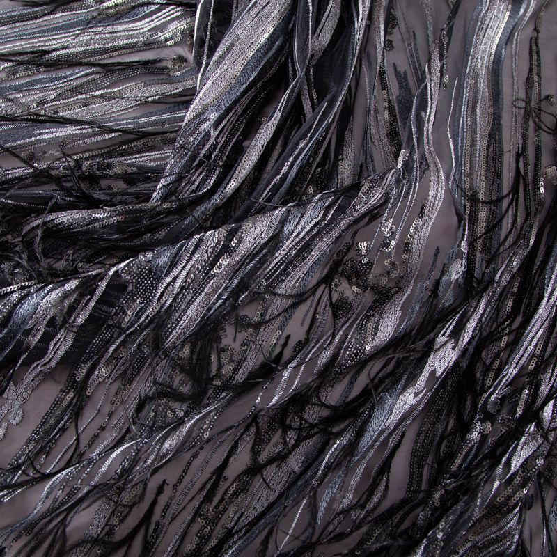 Сетка с вышивкой и пером 050-19877 черный/серебро