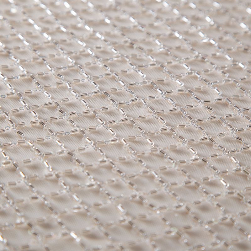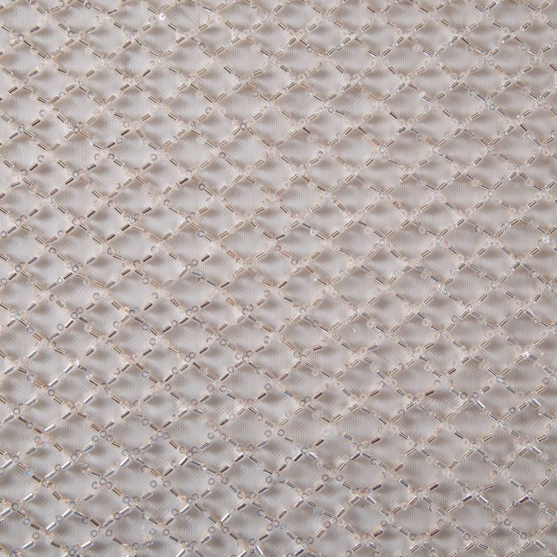Эластичная мягкая сетка золотистого оттенка, расшитая стеклярусом и пайетками в тон основы. Геометрический дизайн делает полотно универсальным в использовании. Итальянская сетка прекрасно подходит для пошива праздничных нарядов, платьев, юбок и топов для торжественных случаев, а также отделки аксессуаров.