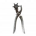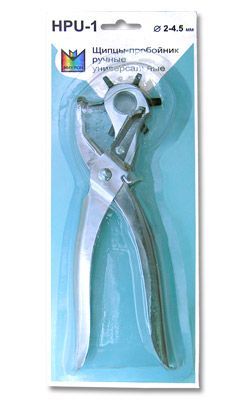 Ручные универсальные щипцы-пробойник Micron HPU-1 используют для плотных тканей, кожи и кожзама. Удобное вращающееся колесо с насадками разного диаметра 2; 3; 3,5; 4; 4.5 мм. Острие не нуждается в заточке. Щипцы-пробойник подходит для использования в быту. Работа с пробойником: снимите ручки с предохранителя-фиксатора, вращая колесо против часовой стрелки, установите насадку необходимого Вам диаметра. Положите используемый материл между насадкой и ударным диском. Плотно сожмите ручки щипцов. НЕ ИСПОЛЬЗОВАТЬ в работе с тонкой тканью!