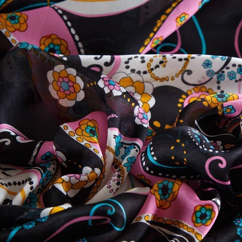 Шелк натуральный 064-12345 черный принтованный в Нарьян-Маре