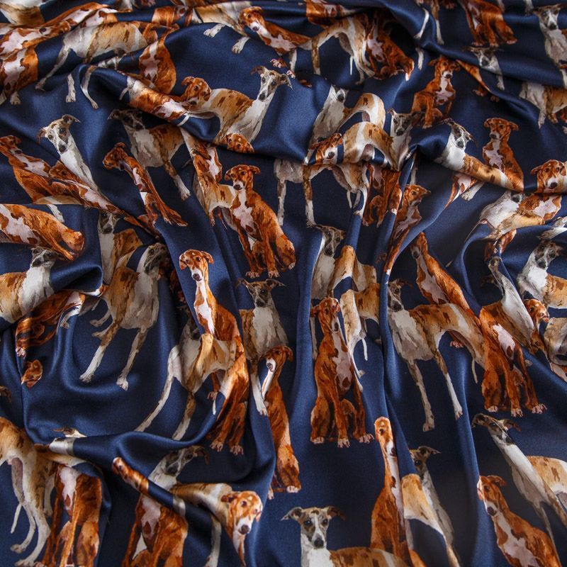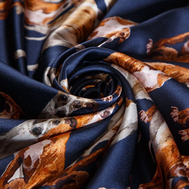 Шелк натуральный 064-14725 темно-синий принтованный