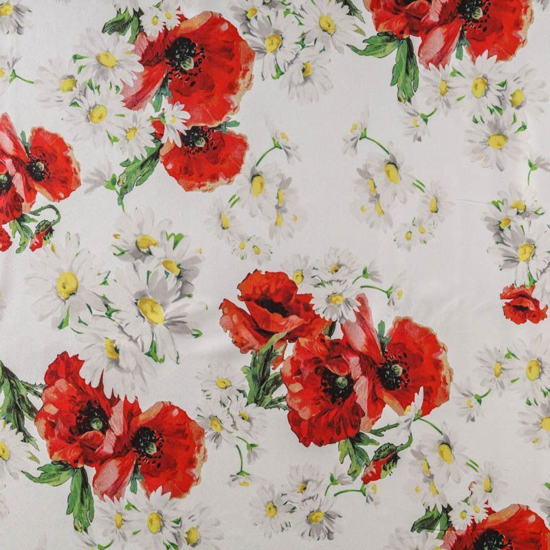 Итальянский матовый шелк с летним ярким принтом на белом фоне, тонкий, слегка прозрачный, отлично драпируется, легкий и струящийся с креповой поверхностью. Идеально подойдет для пошива платьев и сарафанов расклешенных моделей, с воланами, рюшами, летящих юбок, топов, блузки, рубашки, костюма в пижамном стиле.
