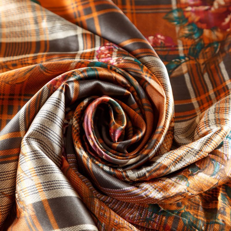 Шелк натуральный К156-78 рыже-коричневый принтованный