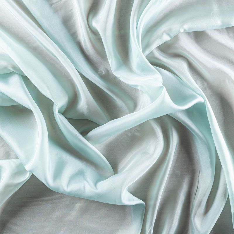 Очень красивый и нежный шелк благородного светло-голубого оттенка. Ткань тонкая, мягкая и легкая, не много просвечивает, ее прикосновения к телу очень приятны, в изделии из него будет комфортно как в жару, так и в прохладную погоду. Лицевая сторона гладкая, с легким сатиновым блеском. Прекрасно подойдет для пошива летнего сарафана, платья, блузки, топа, туники, костюма в пижамном стиле, широких брюк или юбки.