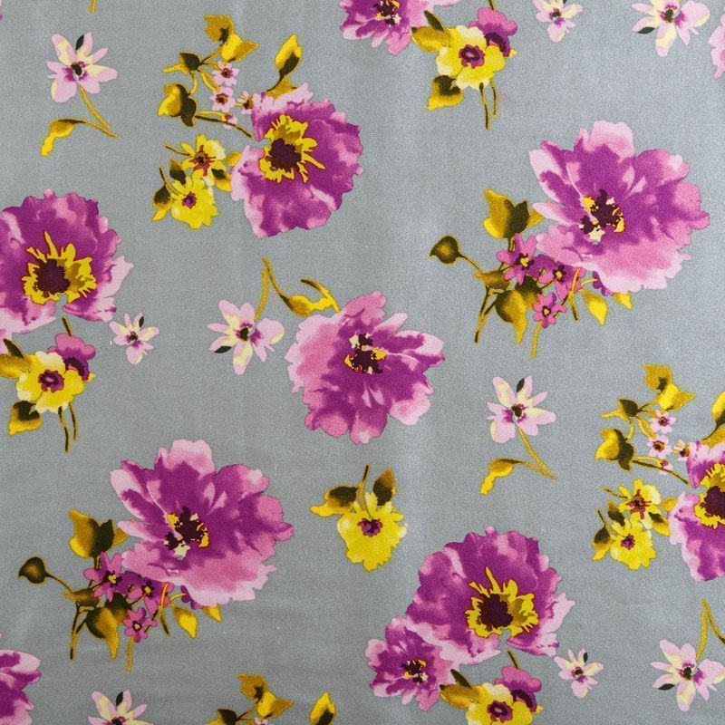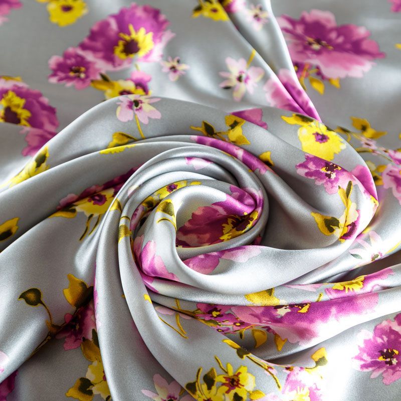 Шелк натуральный К15-381 серо-стальной принтованный