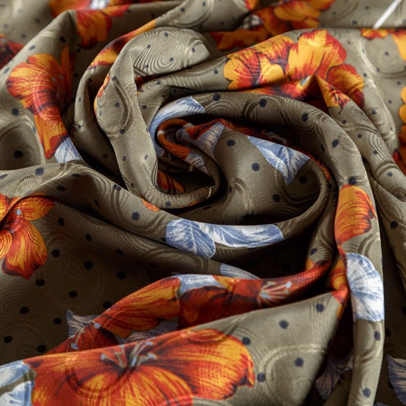 Итальянский купонный матовый шелк с жаккардовым узором, тонкий, не прозрачный, отлично драпируется, легкий и струящийся. Идеально подойдет для пошива платьев и сарафанов расклешенных моделей, с воланами, летящих юбок, топов, блузки, костюма в пижамном стиле.